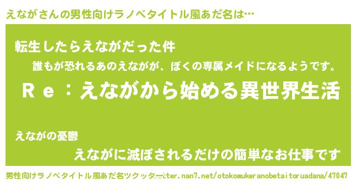 | 女子向けラノベタイトル風あだ名 | 『闇のえなが』『えながの玉の輿計画!』 |