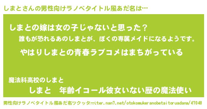 | ヘコむあだ名 | 『つくし』『しまを』『しまっふぃ~』 |