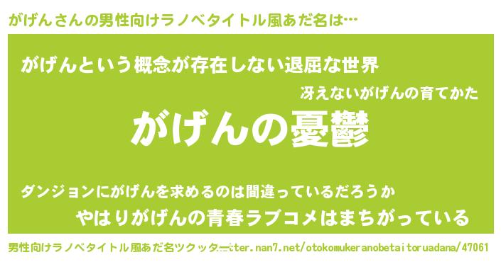 | 女子向けラノベタイトル風あだ名 | 『(仮)がげんのやんごとなき事情』 |