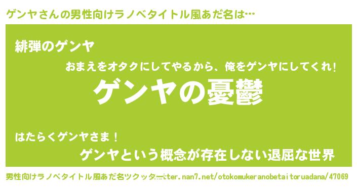 | ヘコむあだ名 | 『ゲンにー』『ゲンヤ(小並感)』 |