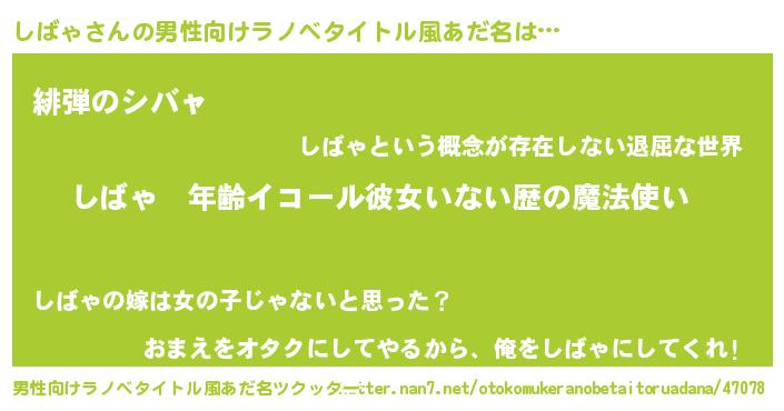 | 女子向けラノベタイトル風あだ名 | 『しばゃの玉の輿計画!』 |