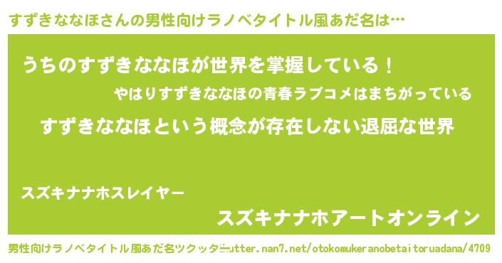 | ヘコむあだ名 | 『すずきななほ(笑)』『すずにー』 |