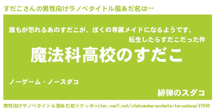 | 意味不明あだ名 | 『自称すだこ』『永久保存すだこ』 |