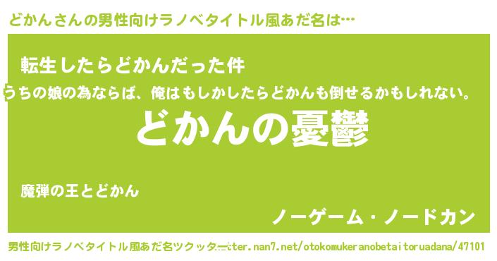 | 女子向けラノベタイトル風あだ名 | 『(仮)どかんのやんごとなき事情』 |