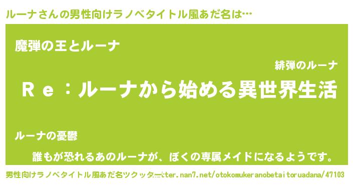 | 女子向けラノベタイトル風あだ名 | 『闇のルーナ』『ルーナの契約王妃』 |