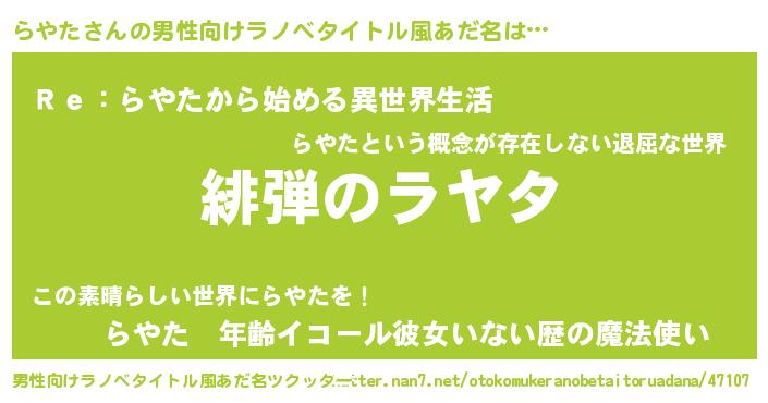 | 女子向けラノベタイトル風あだ名 | 『シンデレラらやた家の靴箱館』 |