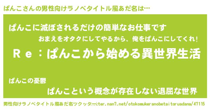 | 意味不明あだ名 | 『自称ぱんこ』『永久保存ぱんこ』 |