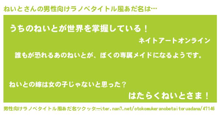 | 欧米人風あだ名 | 『ダルビッシュねいと』『マイケルねいと』 |