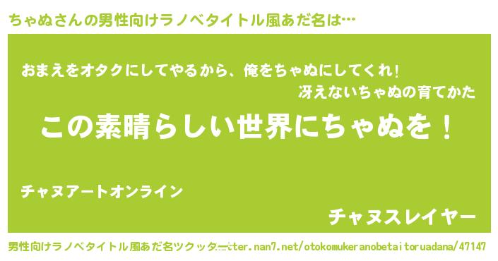 | 意味不明あだ名 | 『住所不定無職ちゃぬ(10歳)』 |