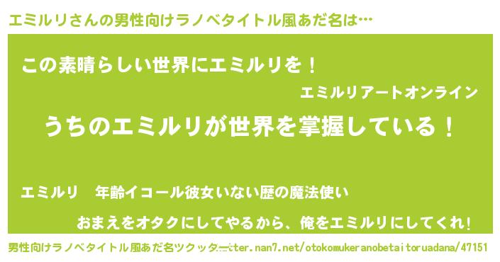 | ヘコむあだ名 | 『エミっふぃ~』『エミルリ(震え声)』 |
