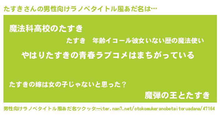 | 女子向けラノベタイトル風あだ名 | 『たすきの雑貨屋さん』 |