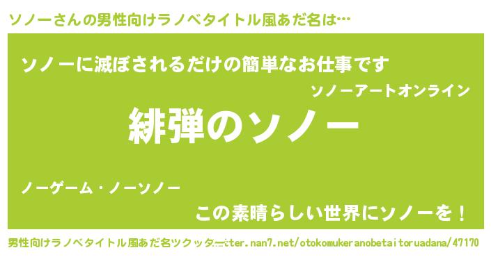 | 意味不明あだ名 | 『住所不定無職ソノー(11歳)』 |
