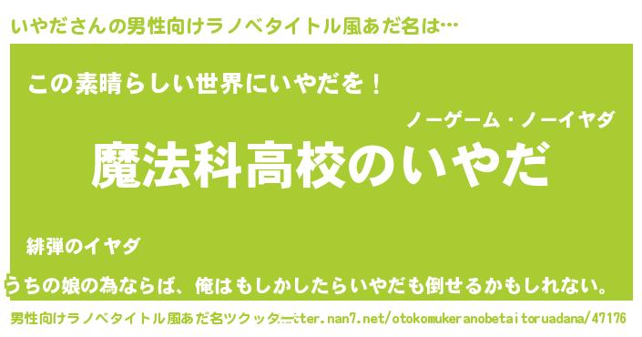 | ヒーロー風カッコイイあだ名 | 『サイバー戦士イヤダ』『仮面イヤダー』 |