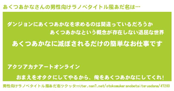 | 意味不明あだ名 | 『とにかく怪しいあくつあかな』 |