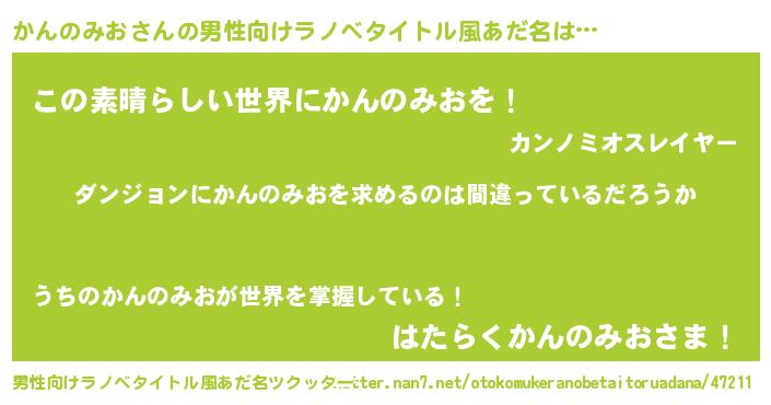 かんのみおさんの男性向けラノベタイトル風あだ名をツクッター!