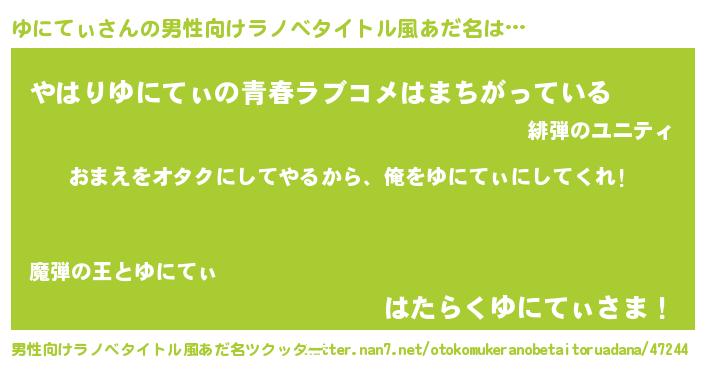 | 女子向けラノベタイトル風あだ名 | 『ゆにてぃ夫妻のなれそめ』 |