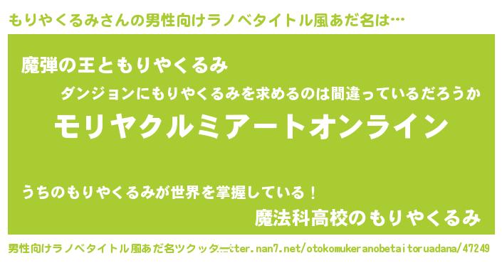 | 女子向けラノベタイトル風あだ名 | 『もりやくるみ姫と円卓の騎士』 |