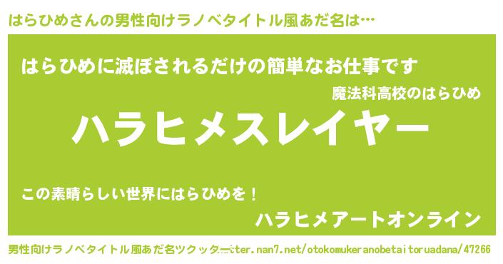 | ヒーロー風カッコイイあだ名 | 『スーパーハラヒメ』『仮面ハラダー』 |
