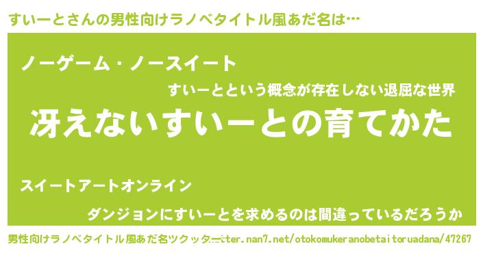 | ヘコむあだ名 | 『すい太郎』『すいーと(爆)』 |