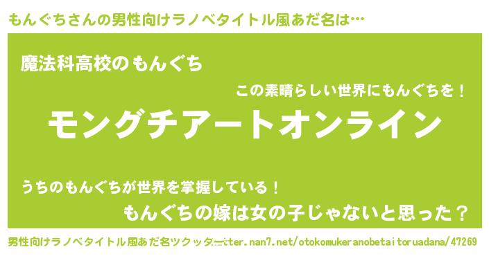 | 胡散臭い通販商品みたいなあだ名 | 『億万長者になれるブレスレット…その名も「もんぐち」』 |