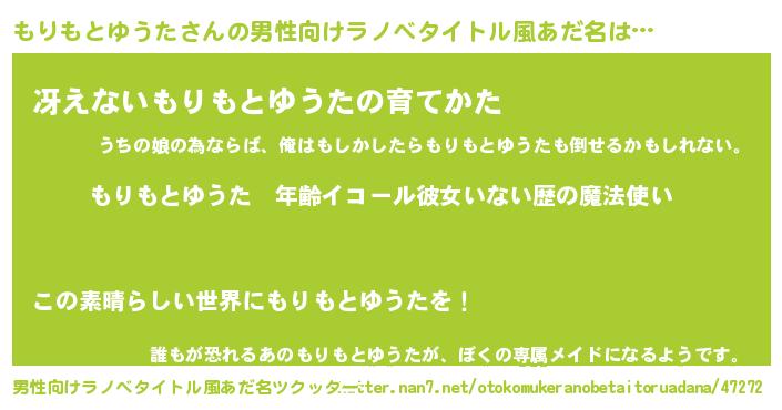 | 女子向けラノベタイトル風あだ名 | 『もりもとゆうたの玉の輿計画!』 |