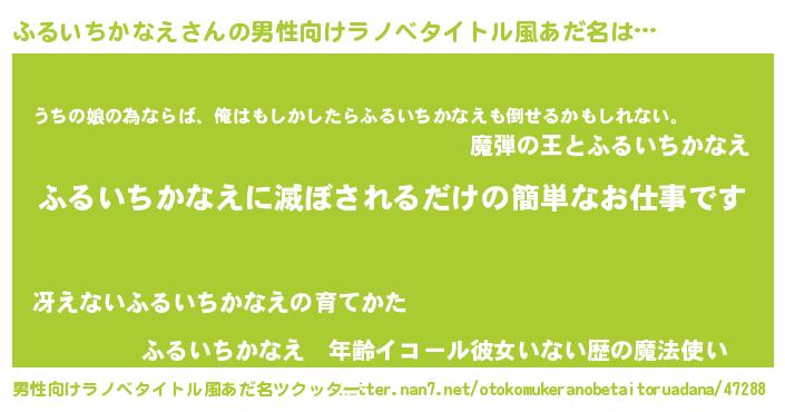 | 胡散臭い通販商品みたいなあだ名 | 『世界が平和になる高級そうな絵画…その名も「ふるいちかなえ」』 |