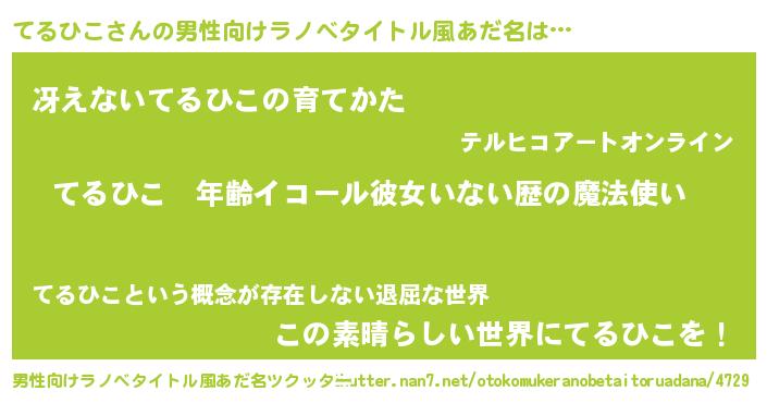 | 女子向けラノベタイトル風あだ名 | 『てるひこの玉の輿計画!』 |