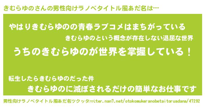 | 胡散臭い通販商品みたいなあだ名 | 『運命の人と巡り会える高級そうな壺…その名も「きむらゆの」』 |