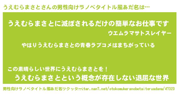 | 女子向けラノベタイトル風あだ名 | 『うえむらまさとの雑貨屋さん』 |