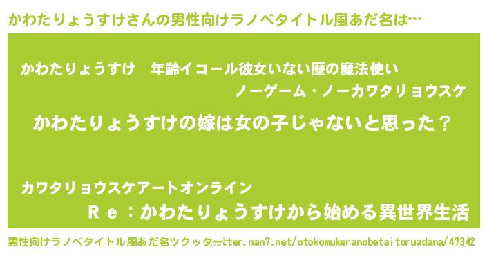 意味不明あだ名 | 『とにかく怪しいかわたりょうすけ』 |