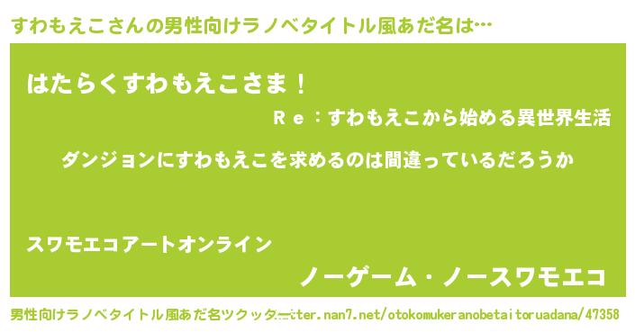 | 胡散臭い通販商品みたいなあだ名 | 『信頼と実績のネックレス…その名も「すわもえこ」』 |