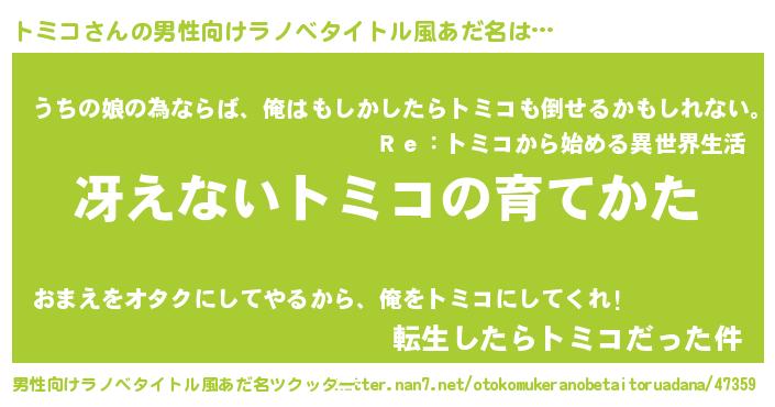 | 意味不明あだ名 | 『トミコフォーエバー』『自称トミコ』 |