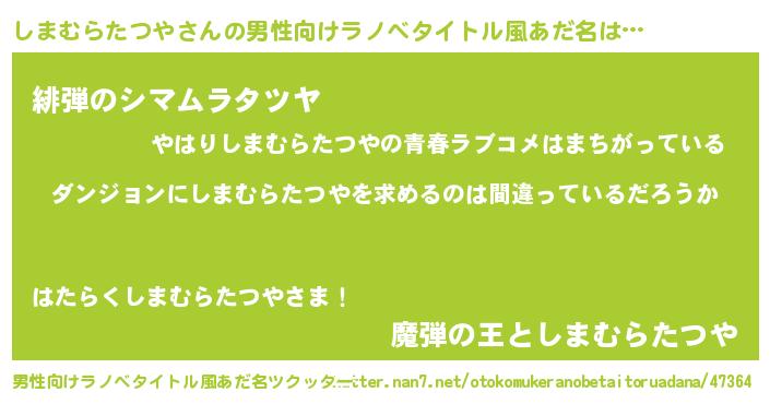 | 女子向けラノベタイトル風あだ名 | 『しまむらたつやは平凡を望む』 |