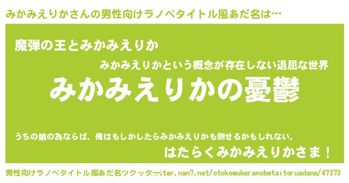 | 女子向けラノベタイトル風あだ名 | 『(仮)みかみえりかのやんごとなき事情』 |