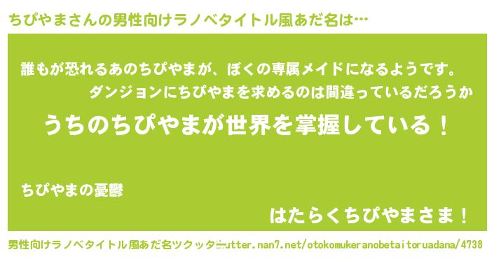 | 女子向けラノベタイトル風あだ名 | 『男装ちぴやまの憂鬱な任務』 |