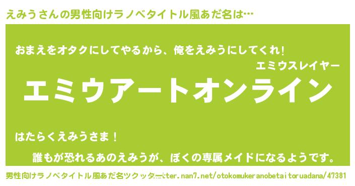 | 胡散臭い通販商品みたいなあだ名 | 『億万長者になれる霊験あらたかなお札…その名も「えみう」』 |