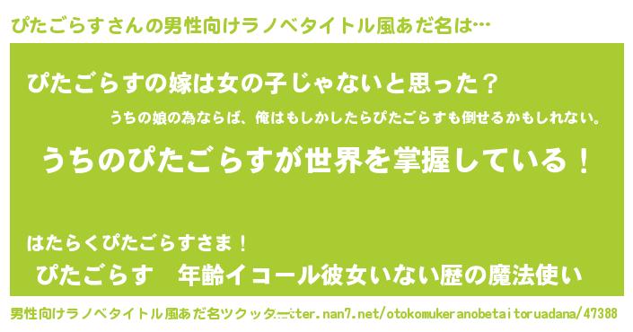 | ヒーロー風カッコイイあだ名 | 『天弓騎士ピタ』『慈愛の使者ぴたごらす』 |