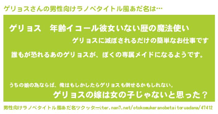 | ヘコむあだ名 | 『ゲリョス(苦笑)』『ゲリっぺ』 |