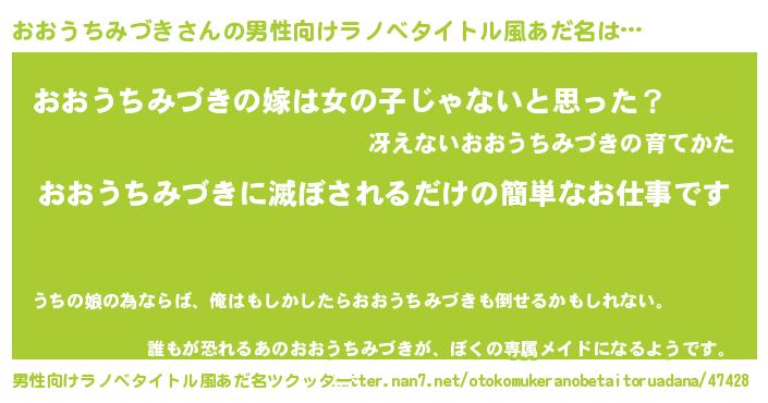 | 意味不明あだ名 | 『とにかく怪しいおおうちみづき』 |