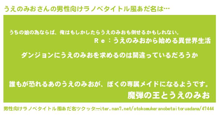 | 意味不明あだ名 | 『とにかく怪しいうえのみお』 |