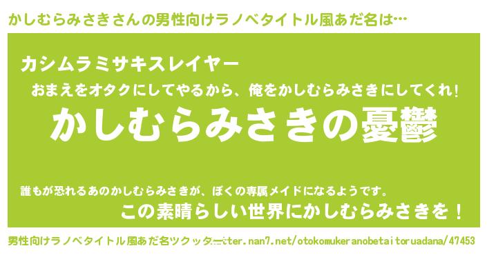 | 女子向けラノベタイトル風あだ名 | 『(仮)かしむらみさきのやんごとなき事情』 |
