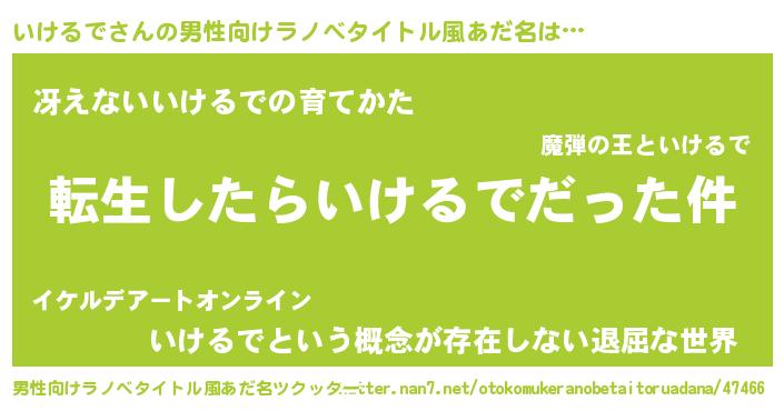 | ヘコむあだ名 | 『いけるで(小並感)』『いけもー』 |