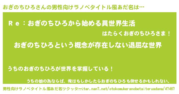 | 伝説のあだ名 | 『聞きしに勝る勇者おぎのちひろ』 |