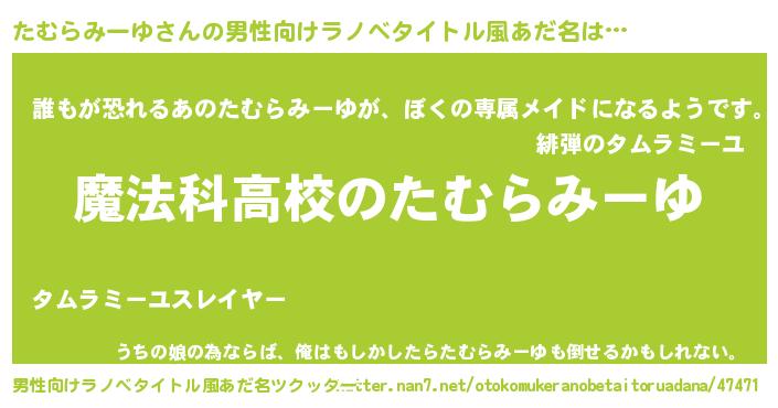 | 意味不明あだ名 | 『自称たむらみーゆ』 |