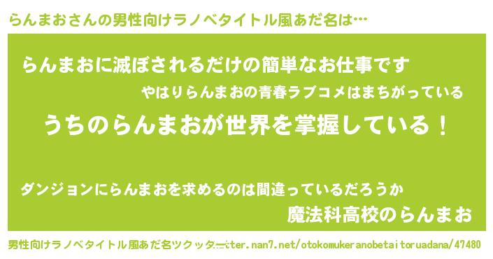 | 意味不明あだ名 | 『自称らんまお』『らんまおフォーエバー』 |