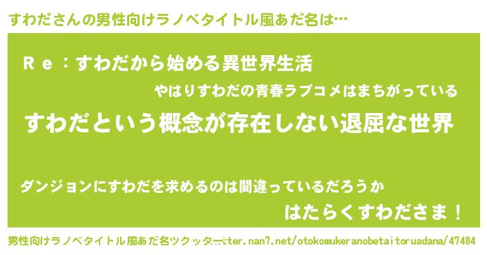 | 胡散臭い通販商品みたいなあだ名 | 『絶対に幸福をもたらす健康食品…その名も「すわだ」』 |