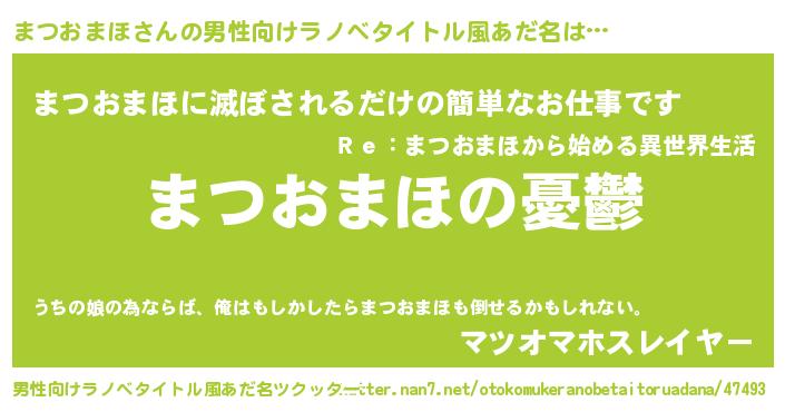 | 胡散臭い通販商品みたいなあだ名 | 『必ず成功する霊験あらたかなお札…その名も「まつおまほ」』 |