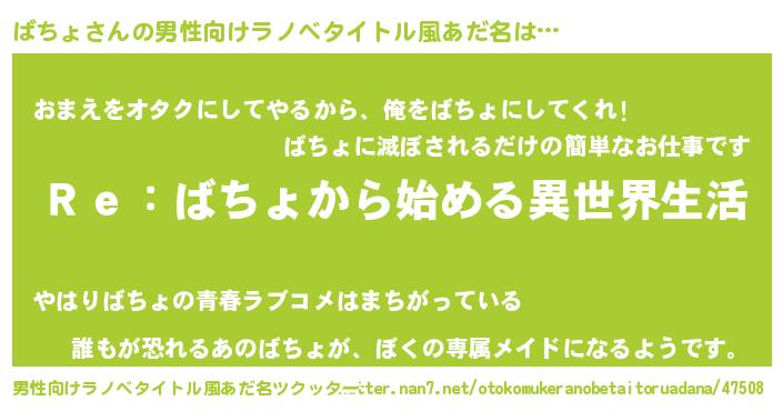 | ヒーロー風カッコイイあだ名 | 『究極戦士バチョ』『正義の使者ばちょ』 |