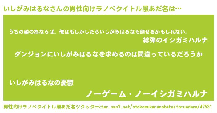 | 女子向けラノベタイトル風あだ名 | 『いしがみはるなは平凡を望む』 |
