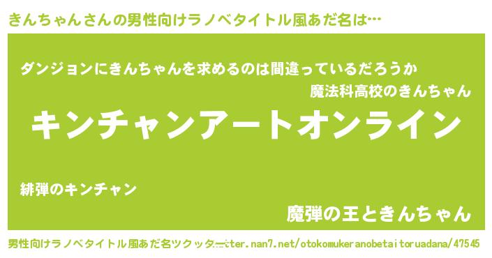 | 意味不明あだ名 | 『ペロリンきんちゃん』『自称きんちゃん』 |
